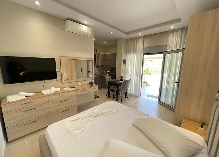 Com vista para o mar, Alcazar Luxury Suites fica a 5 minutos a pé de Supermarket Xhihanka em Vlorë. A propriedade fornece 8 quartos equipados com TV de tela plana com canais via satélite e controle de temperatura para uma estadia agradável em Vlorë.